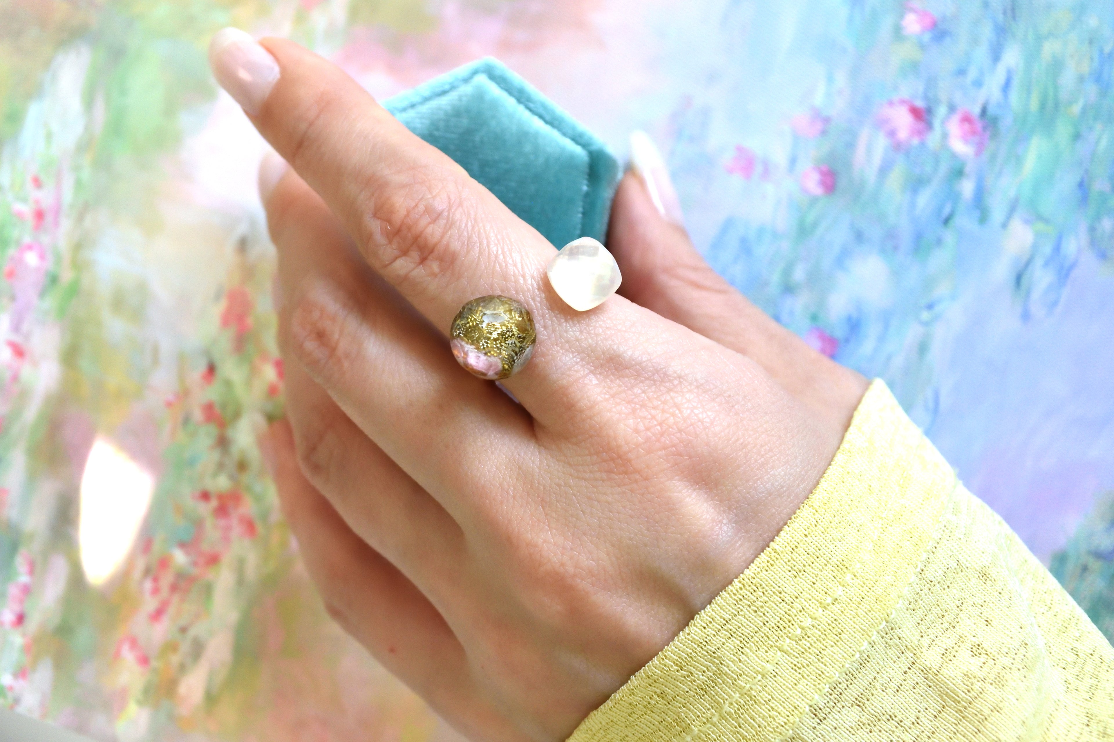 Monet’s "Water Lilies" Adjustable Double Gemstone Ring - B1