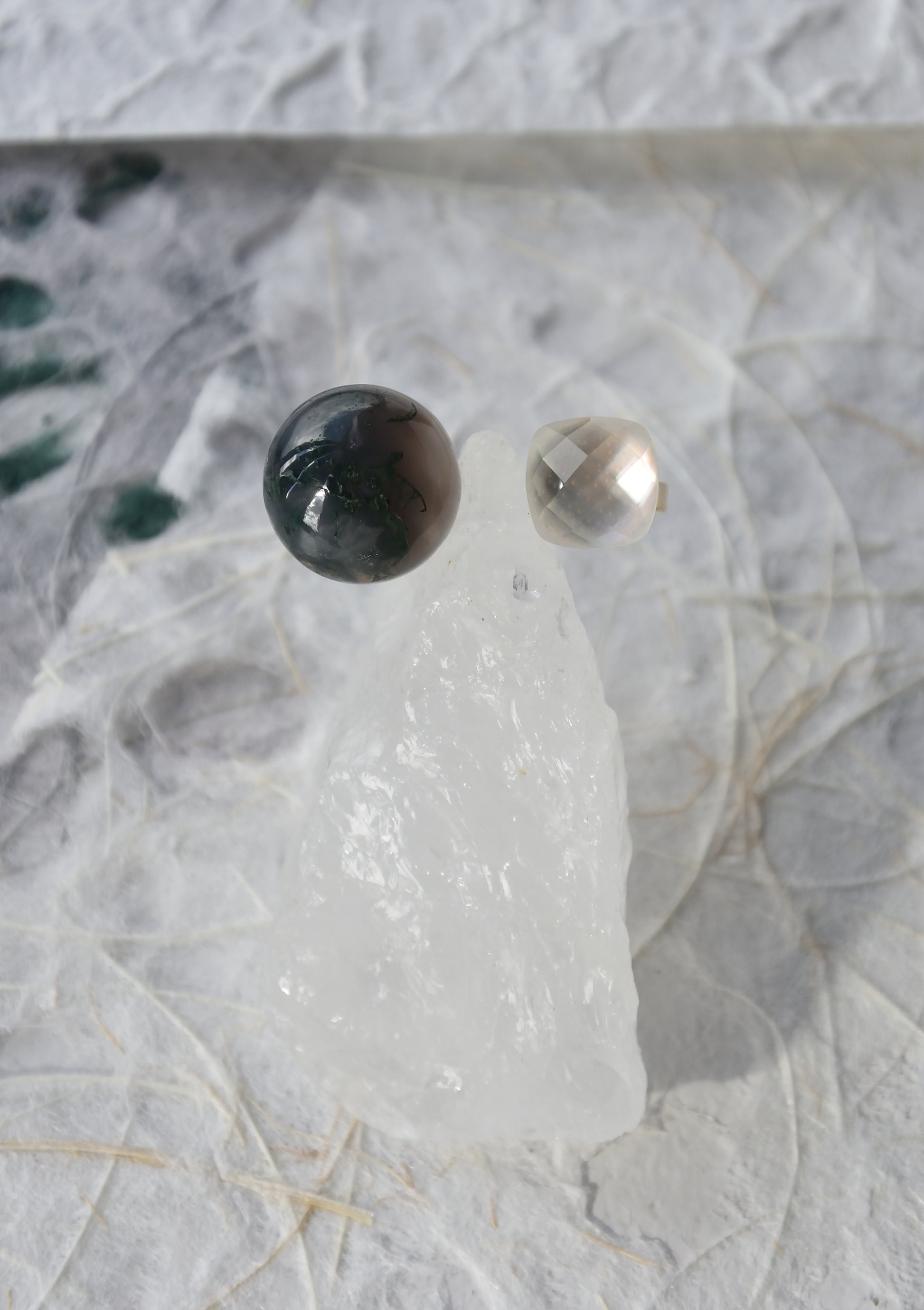 This piece reflects the gentle harmony of river and sky, capturing the shifting greens and soft light of Monet’s brushstrokes. The main stone, Moss Agate, evokes the tranquil flow of nature, while the side stone, Mother of Pearl, adds a luminous glow reminiscent of water touched by light. Together, they create a mosaic of color and serenity—like wearing a fragment of Impressionist poetry at your fingertips.